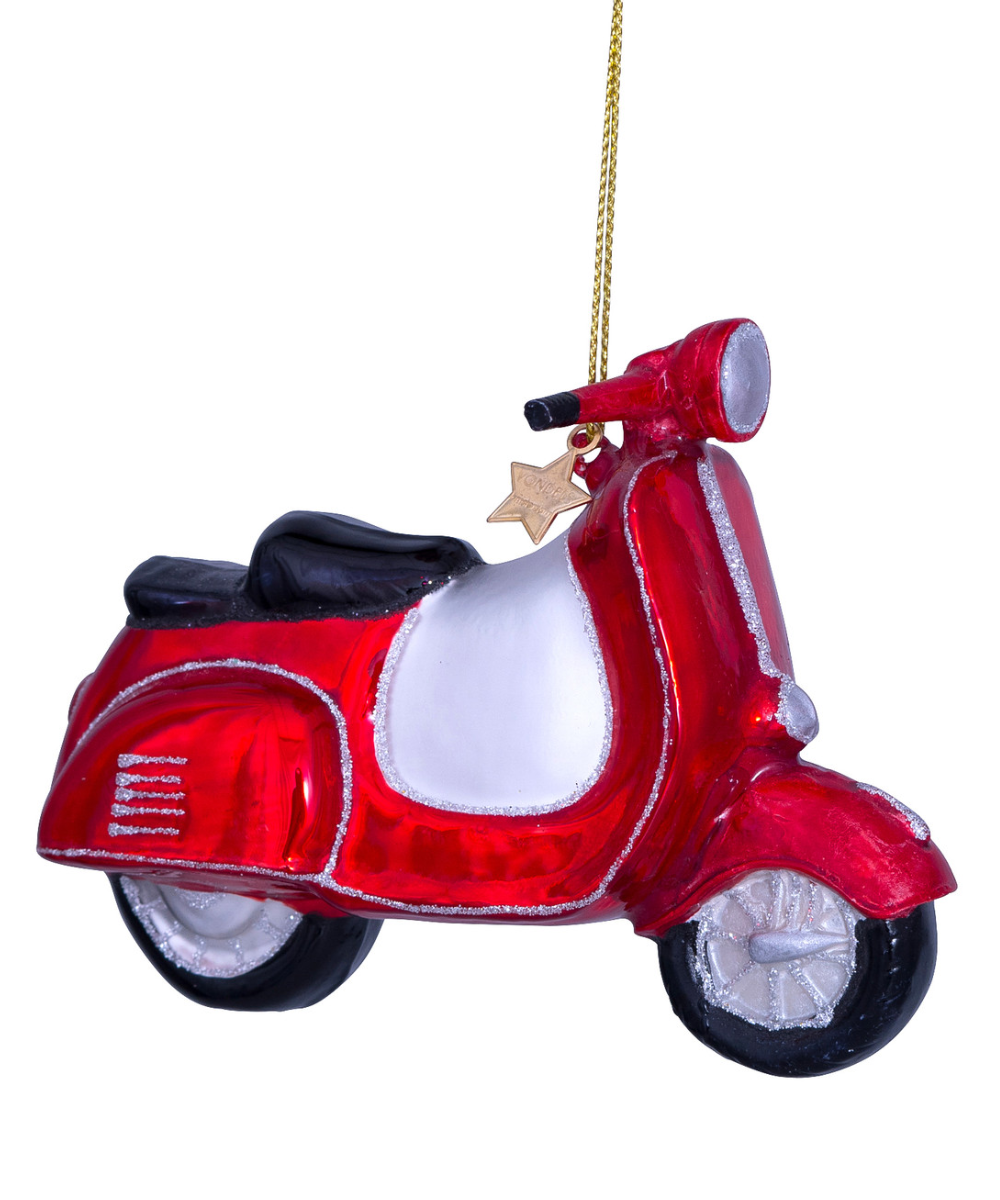 The Red Scooter Glass Ornament showcases meticulous craftsmanship with its vibrant red finish and intricate detailing. Made from high-quality glass, this ornament captures a classic scooter design that adds a playful yet elegant accent to your holiday tree. Its refined construction ensures lasting beauty, making it an ideal piece for collectors and those looking to infuse their seasonal décor with both charm and sophistication.