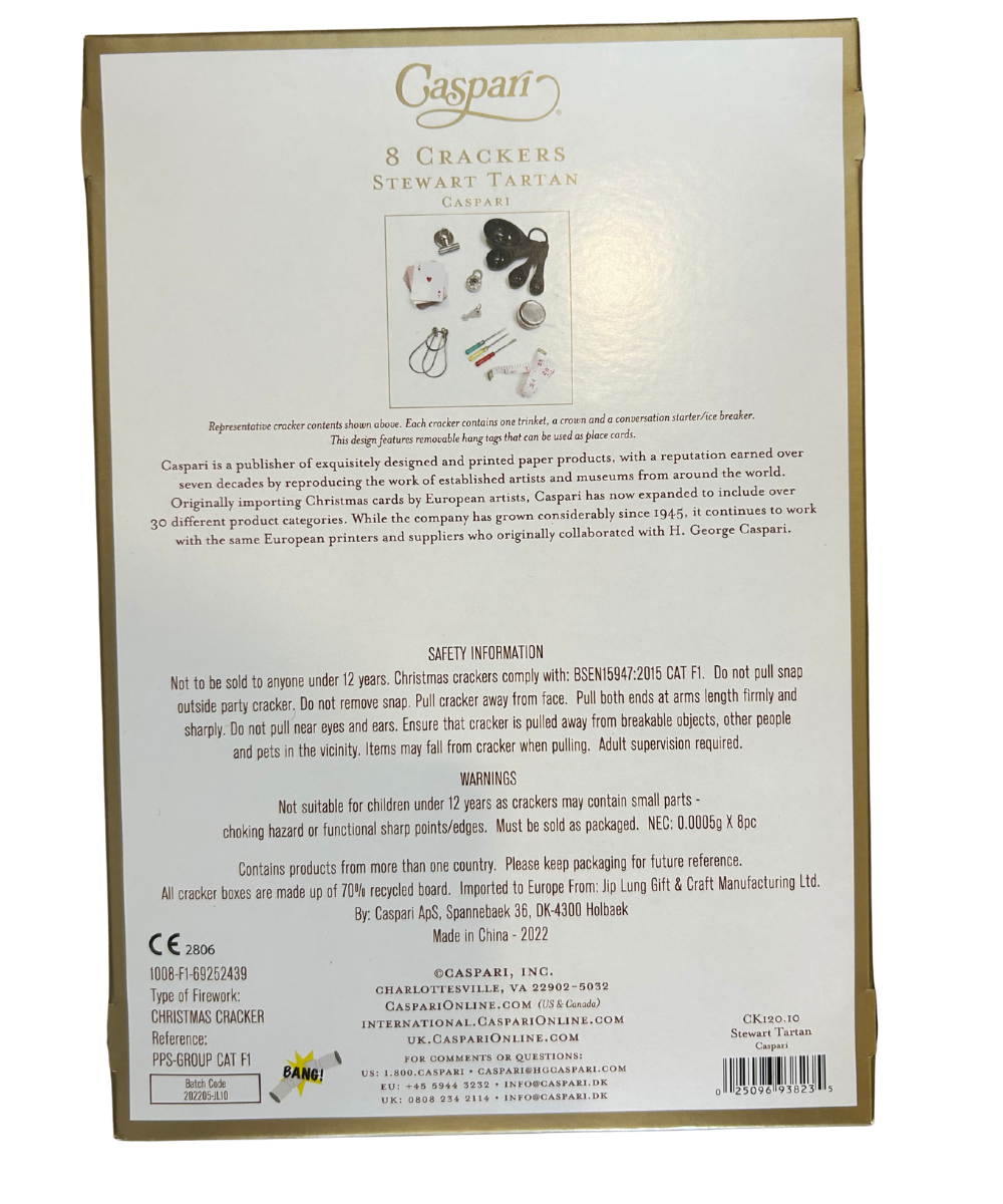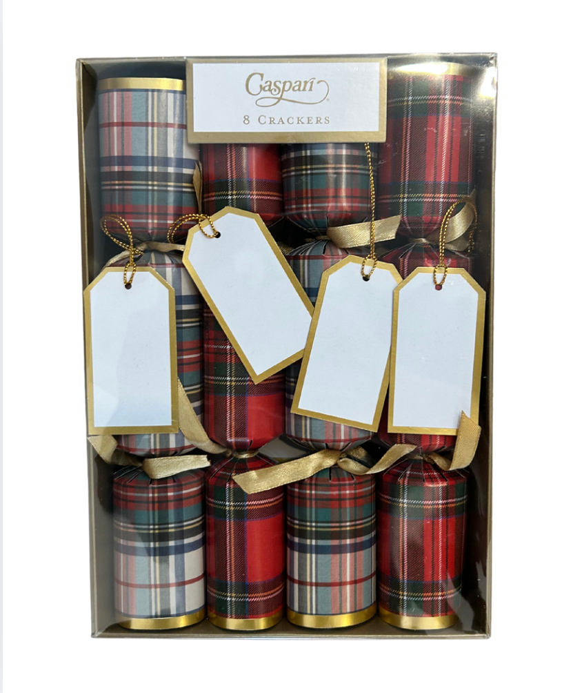 Celebrate the season with our Tartan Christmas Crackers, each containing a traditional trinket, a tissue crown, and a conversation starter or icebreaker. Perfect for adding a festive touch to your holiday gathering, these crackers encourage fun and engaging moments around the table. Designed with classic tartan patterns, they blend timeless style with joyful entertainment, making your Christmas celebrations memorable and lively.