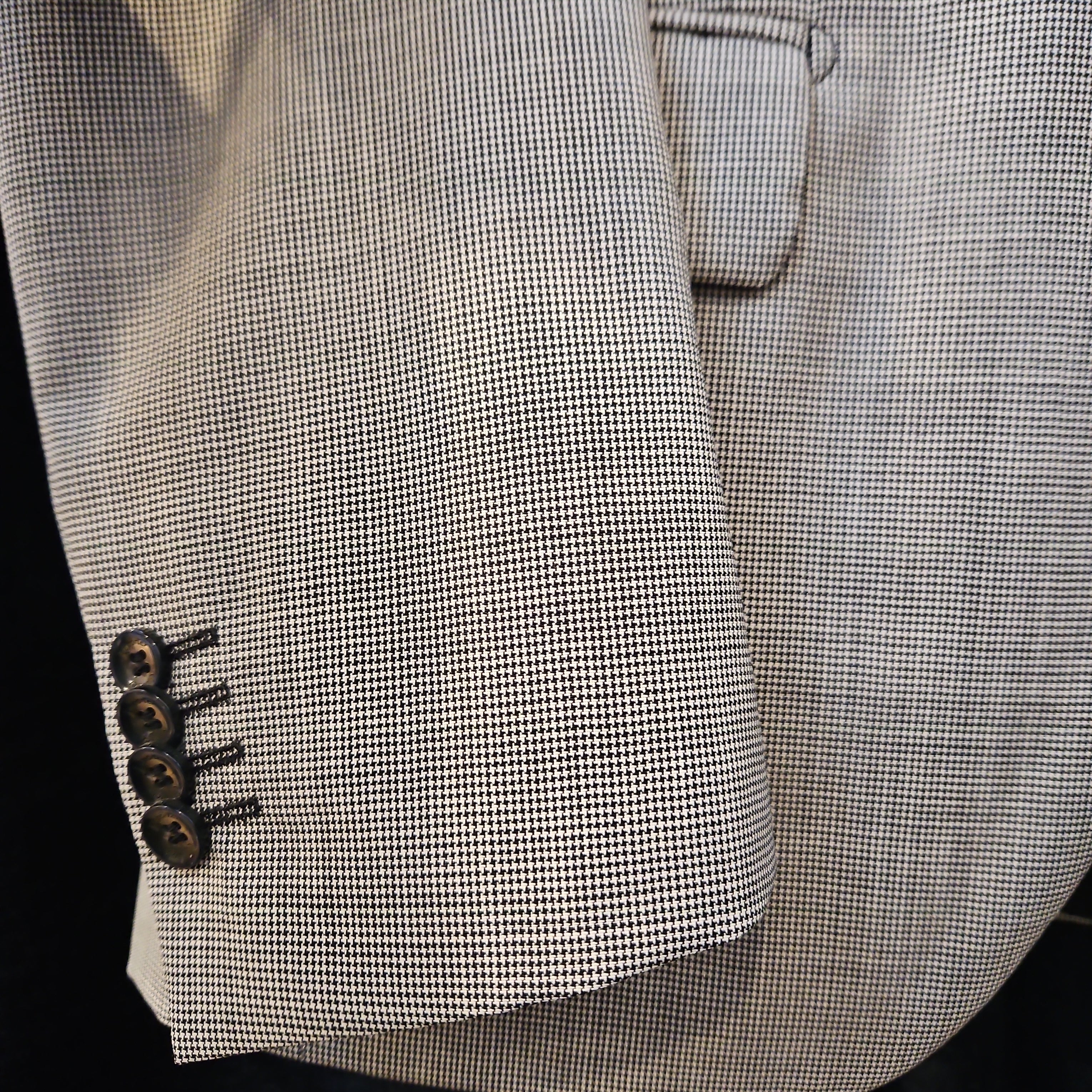 This Reporter Tiny Houndstooth Blazer 9WB3363 10539724 is made of 100% wool, with a timeless tiny houndstooth pattern. Keep warm and look stylish in this versatile blazer. Perfect for any professional or formal occasion.