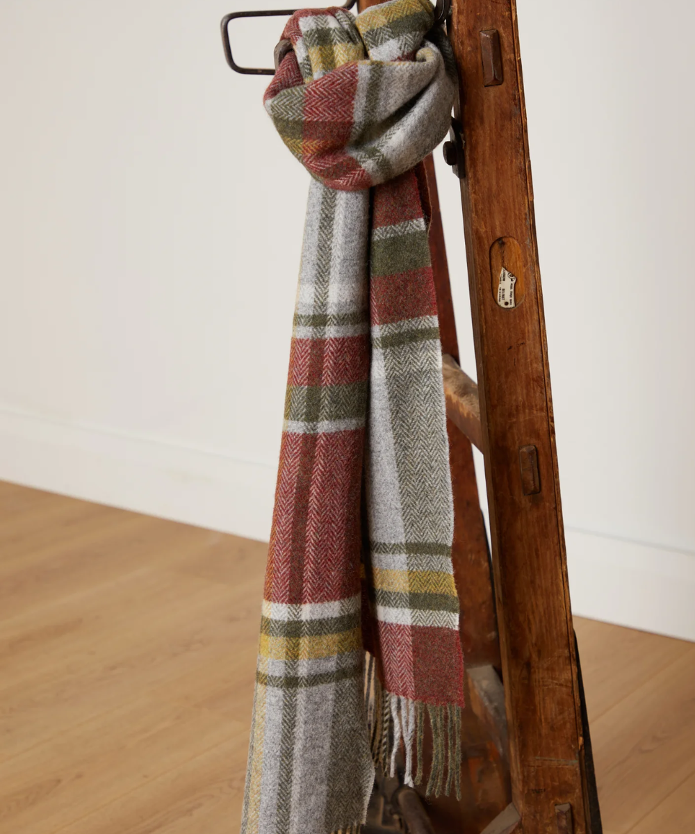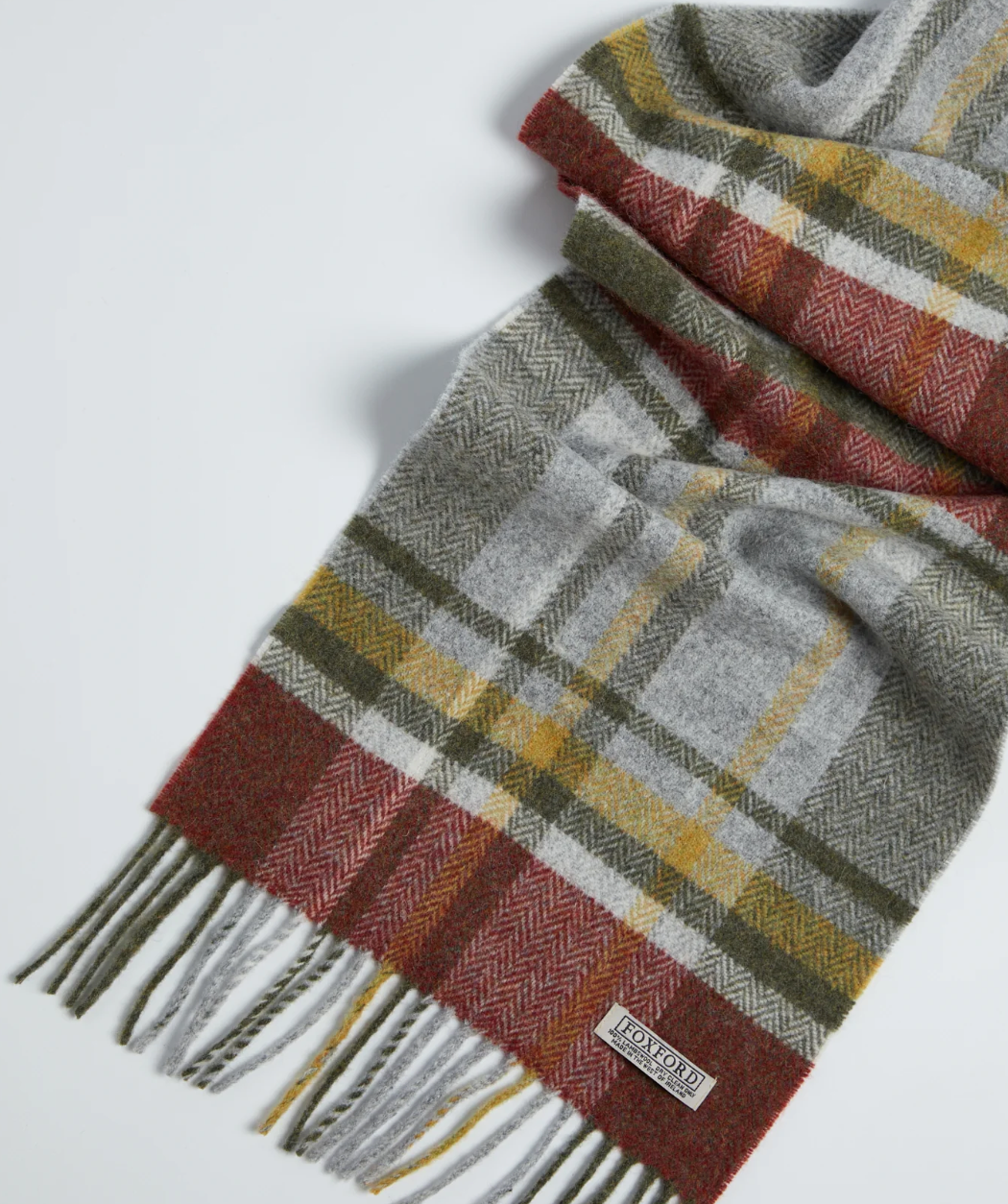 Expertly crafted at Foxford using over 130 years of traditional weaving techniques, this Rust and Green Tartan Scarf offers timeless style and warmth. Its muted green and rust tartan stripes add a subtle pop of color, while the classic roll fringe completes the look. Perfect for chilly spring days, this scarf keeps you comfortably wrapped up while enjoying the outdoors.
