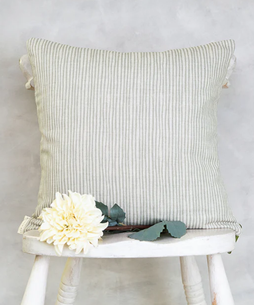 Introduce understated elegance with this linen union cushion, featuring our new Sage Stripe design. The versatile striped pattern complements our expanded sage green collection, pairing seamlessly with Through The Fields and Clover designs for a cohesive aesthetic. Measuring 42cm square with a plush feather fill, this English-made piece brings refined texture and colour coordination to any room, whether styled individually or as part of a curated ensemble.