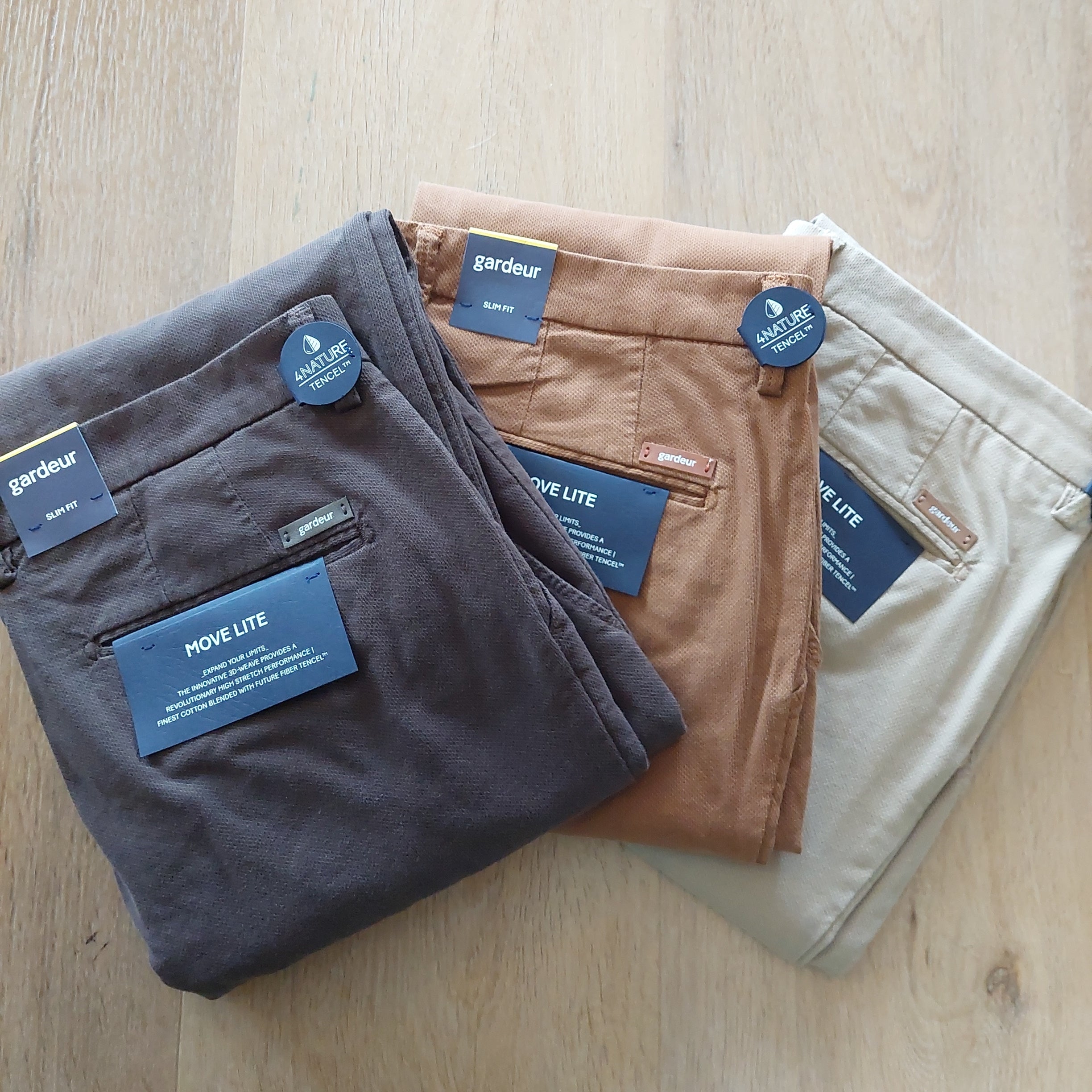Introducing Gardeur Savage-2 Chino 60411, the ultimate slim fit pants for the modern man. Made with a high stretch cotton tencel blend, these pants offer effortless movement and superior comfort. Upgrade your wardrobe with style and function in one.