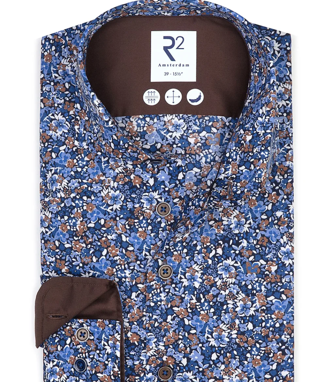 R2 AMSTERDAM NAVY FLORAL LONG SLEEVE SHIRT
