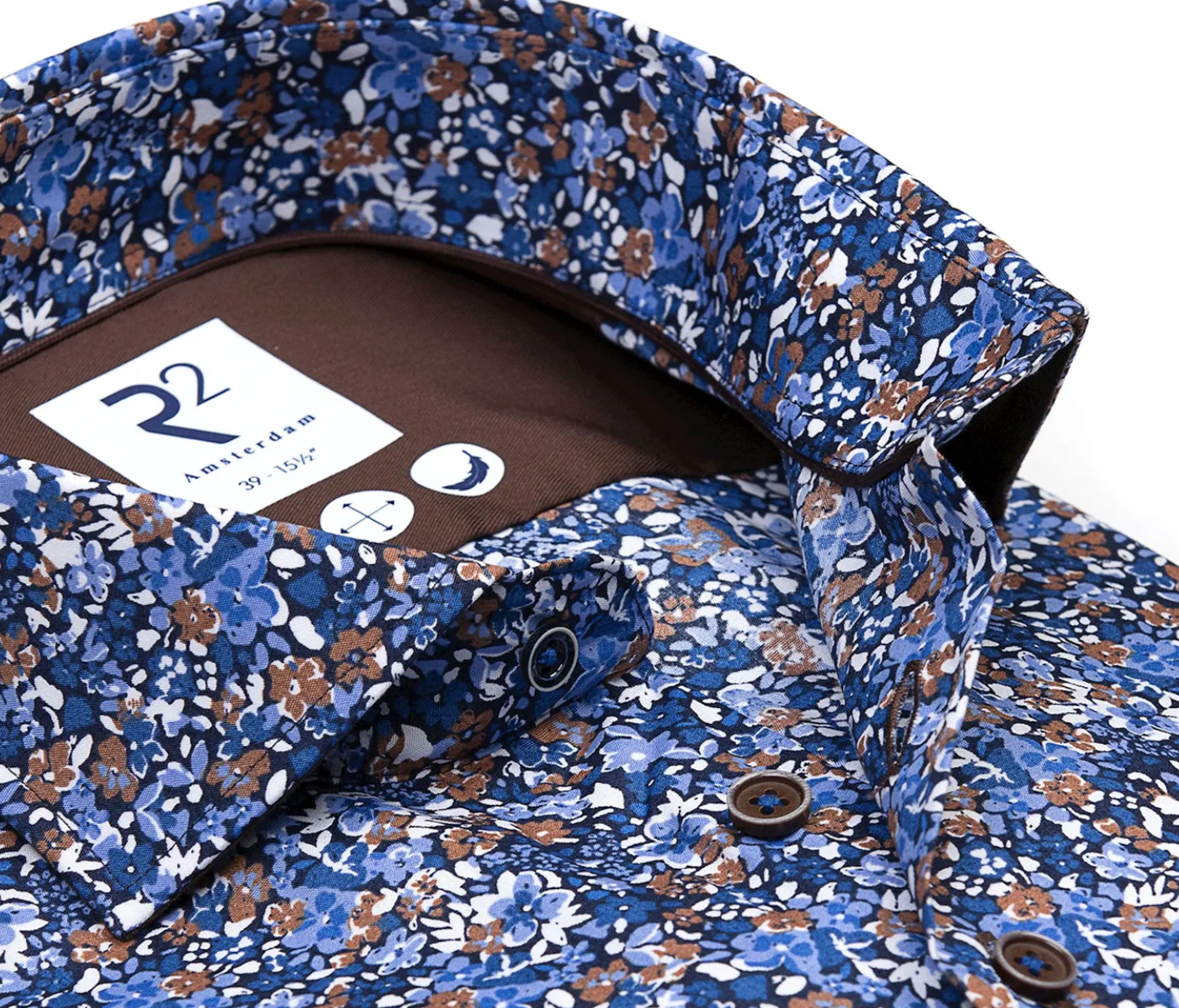 Upgrade your fall fashion with the R2 Amsterdam Navy Floral Long Sleeve Shirt. The navy color and floral print add a touch of vibrancy to your wardrobe, while the long sleeves provide both style and warmth on cooler days. Embrace the season in comfort and fashion with this must-have item.