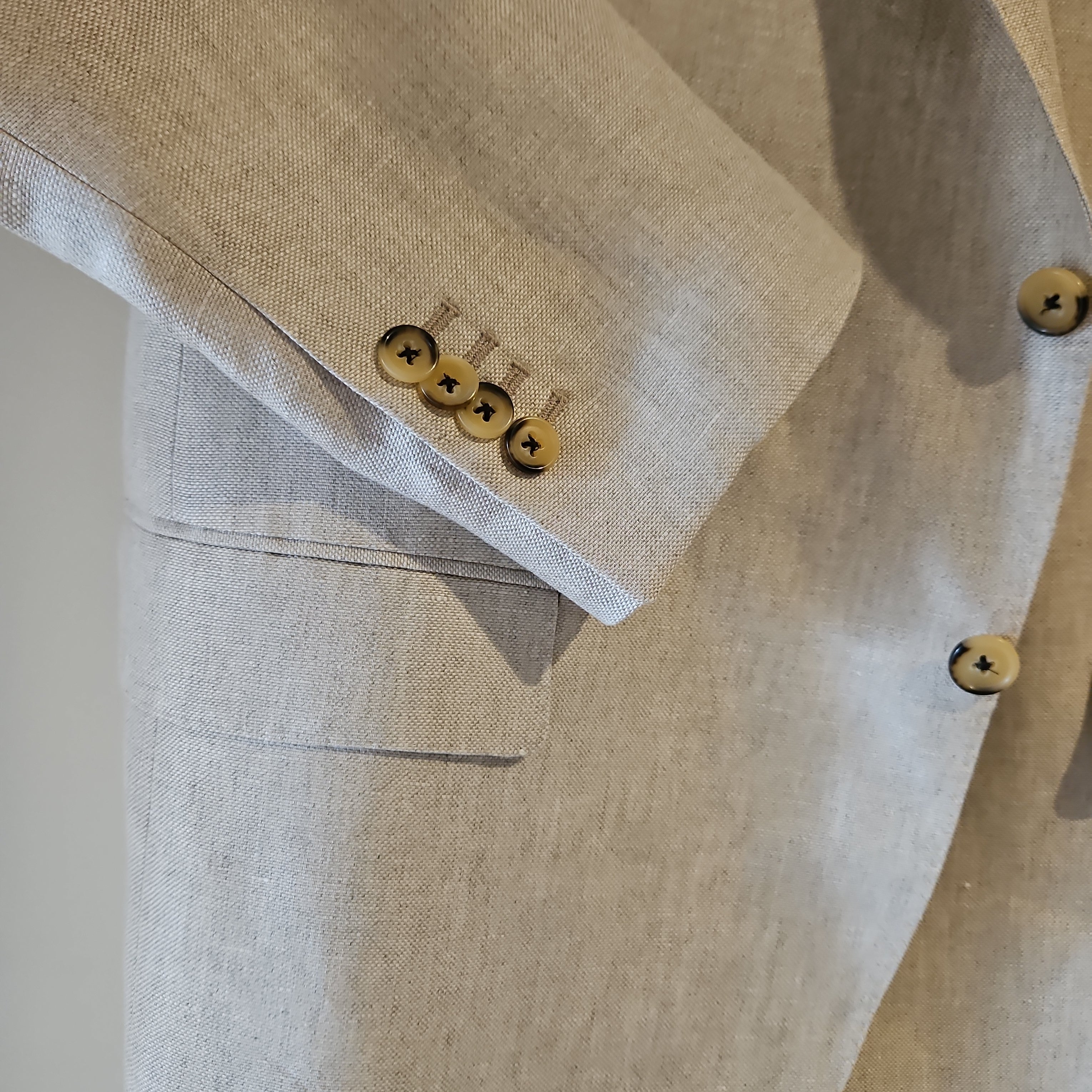 Experience the luxury of Italian craftsmanship with our Sticchi Uomo Sand Blazer. Made from 99% wool, this blazer features a single front closure and subtle pockets for a sleek silhouette. Lined with light tortoise buttons, it's a timeless and sophisticated addition to any wardrobe.