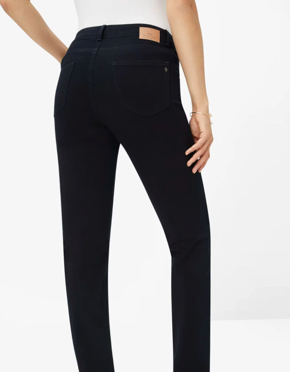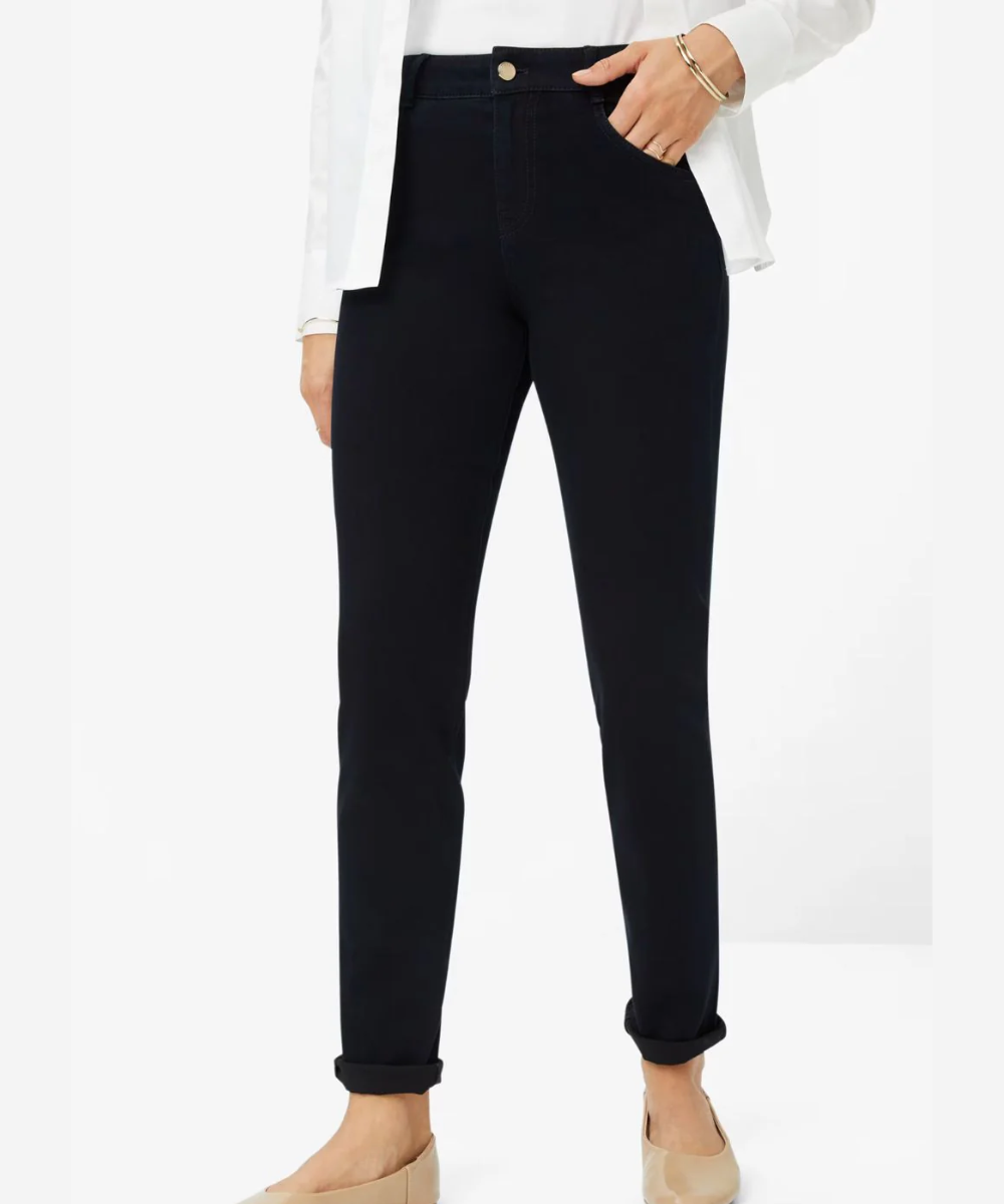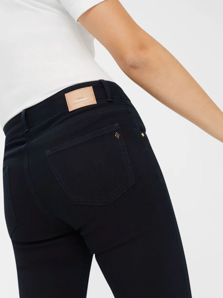 These Brax Shakira dark denim jeans combine expert tailoring with premium cotton sourced from Africa, offering a comfortable stretch fit that enhances mobility. Designed as skinny jeans, they provide a sleek silhouette while maintaining breathability and durability, perfect for those seeking both style and performance in their denim wear.