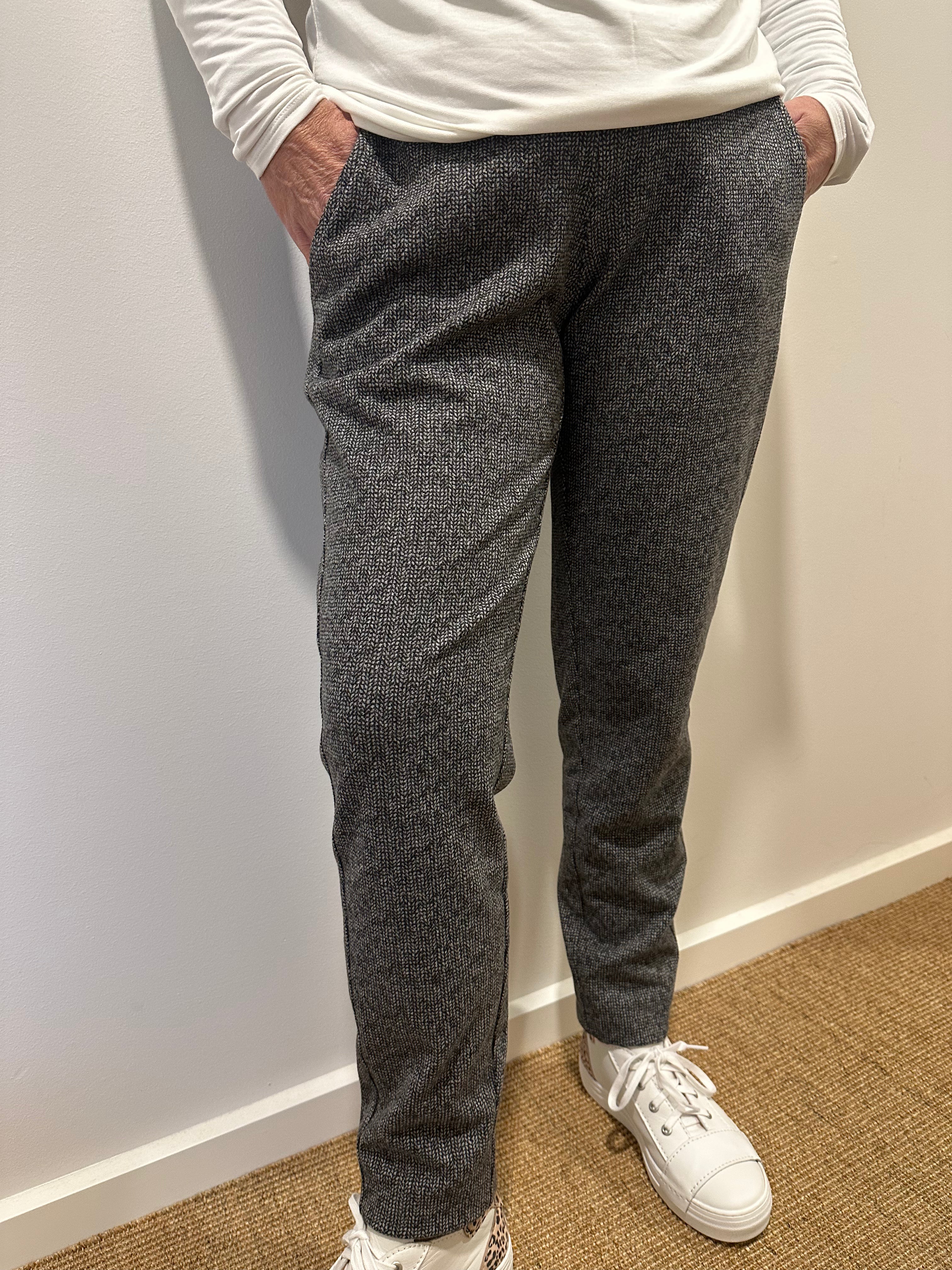 Another great pant from Raffaello Rossi in soft stretch knit jersey with elastic waist for pull on. Small houndstooth pattern in soft grey & charcoal
