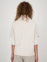 Crafted from a premium cotton blend enriched with flowing viscose and stretch fibres, this knitted cape delivers sophisticated comfort with contemporary style. The distinctive cable knit texture pairs seamlessly with a refined troyer collar, while the generous oversized silhouette provides effortless movement and layering versatility. An elevated piece that transitions seamlessly from casual to polished occasions.