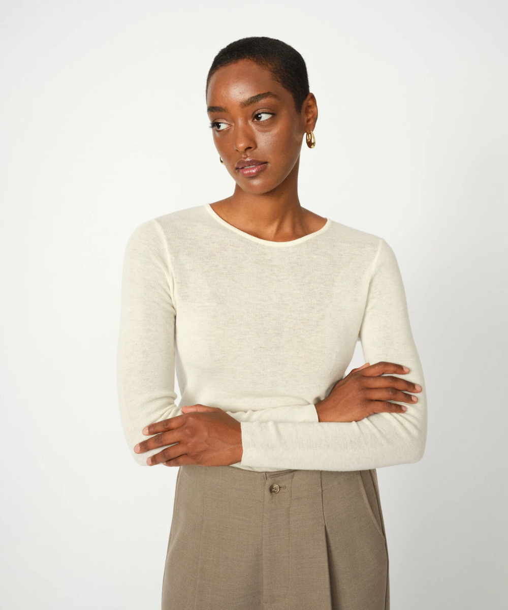 Mos Mosh Bouch O-Neck Knit A refined lightweight knit that embodies understated elegance. Cut with a flattering slim silhouette and finished with a classic round neckline, this piece delivers versatility without compromise. The soft, quality knit fabric drapes beautifully whether layered beneath tailored blazers or paired directly with denim and structured trousers. An essential foundation piece that transitions seamlessly across seasons and occasions.