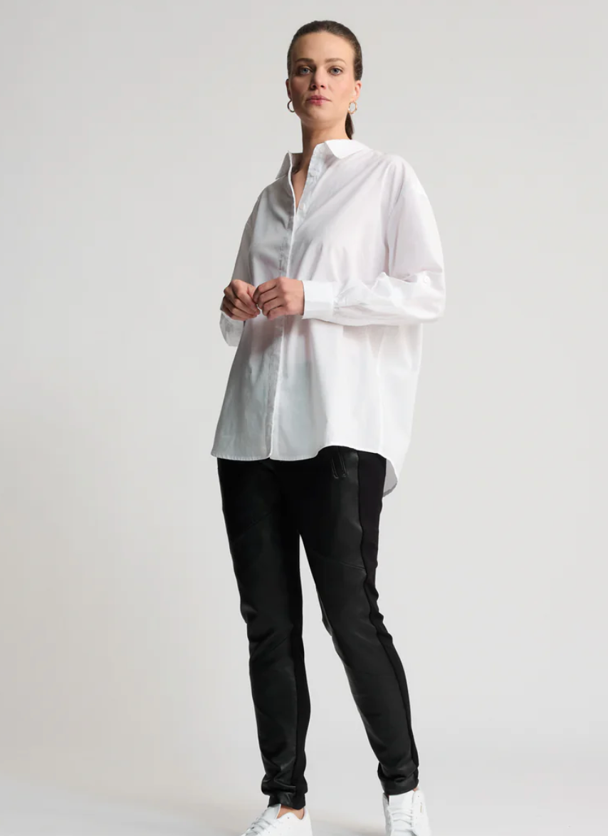 The Tatum Shirt is a versatile wardrobe essential designed for effortless style and comfort. Featuring a relaxed cut with curved hem detailing and a concealed front button placket, this piece transitions seamlessly from casual to polished. The innovative hidden inside cuff belts allow you to wear it as a long sleeve or fold back the cuffs to suit your preference. Crafted from a premium Cotton and Lyocell blended twill, the Tatum delivers exceptional softness and a subtle silk-like sheen. Lyocell, produced using environmentally conscious green technology, requires significantly less water and air emissions than conventional fibres. The fabric breathes beautifully against the skin, manages moisture effectively, and drapes with natural elegance while maintaining its shape wash after wash.