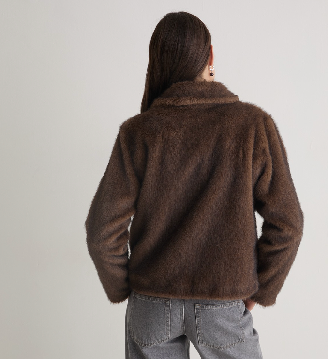 This faux fur coat in rich chocolate brown delivers luxurious warmth without compromise. The silhouette provides substantial coverage, while the smooth zipper closure ensures effortless fastening and adjustment. Crafted from high-quality faux fur, it offers the aesthetic appeal and insulating properties of traditional fur with enhanced durability and ease of care. A statement piece that elevates any winter wardrobe with timeless elegance and practical functionality.