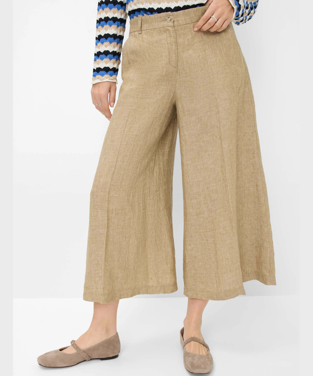 The Brax Melli Linen Pant combines natural breathability with refined tailoring. Made from pure linen, this versatile piece features a dual closure system with both button and zip for secure, adjustable fit. The sophisticated dark beige tone offers understated elegance that transitions seamlessly from casual to smart-casual settings. Linen's inherent texture and breathability make it ideal for warm weather wear, while the structured construction maintains its shape throughout the day. A wardrobe essential that balances comfort with polished style.
