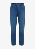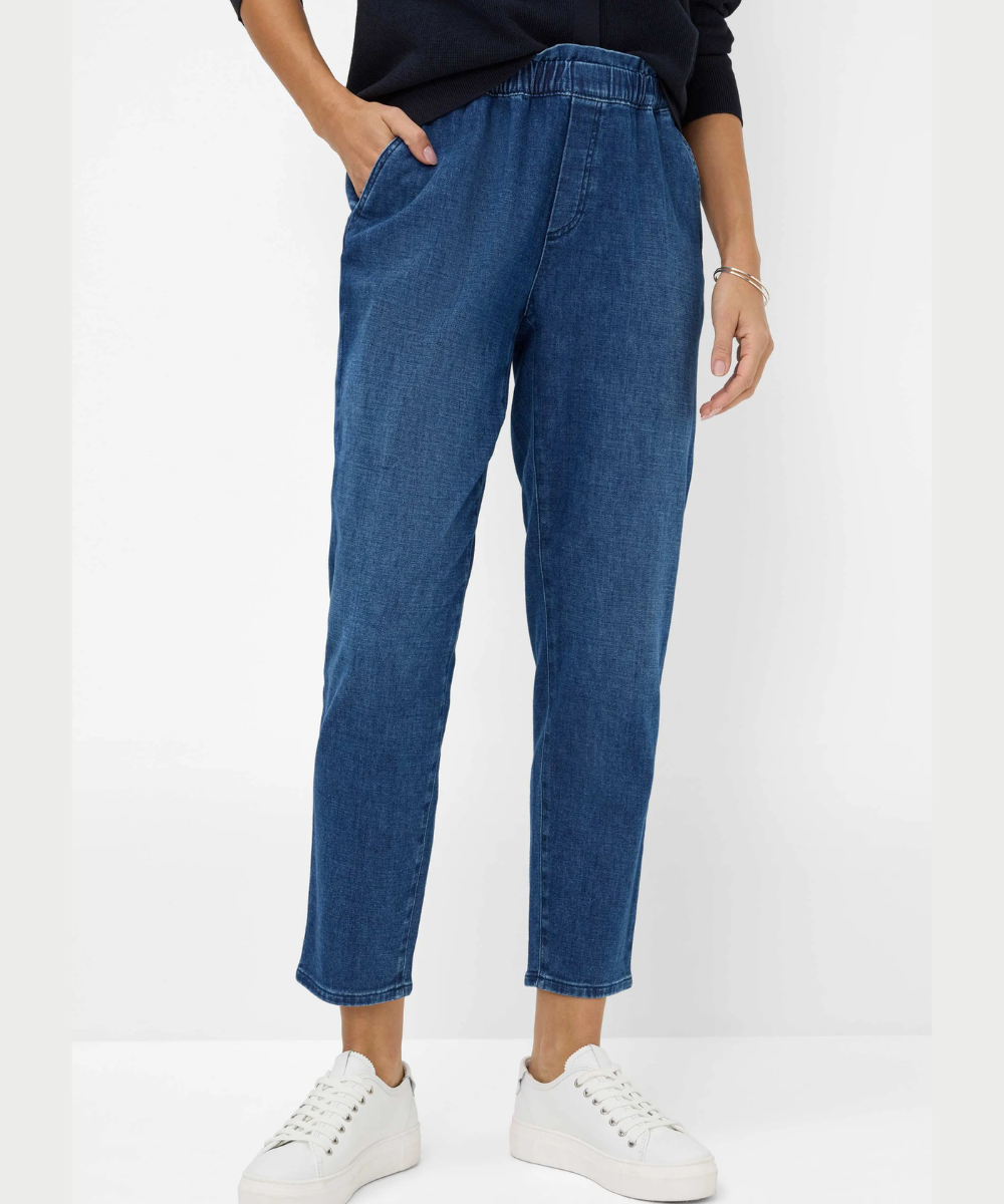The Brax Mona Jean delivers timeless style with a relaxed, flattering silhouette. Crafted in rich dark denim, this mom jean features a comfortable elastic waist that moves with you throughout the day. The classic high-rise cut and generous fit through the hip and thigh create an effortlessly chic look that works for any occasion. Durable denim construction ensures lasting wear, while the versatile dark wash pairs seamlessly with everything in your wardrobe.