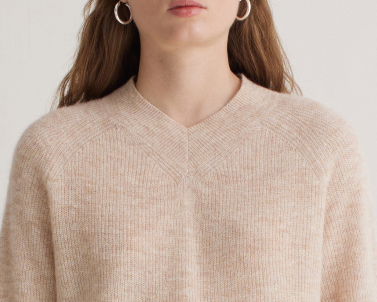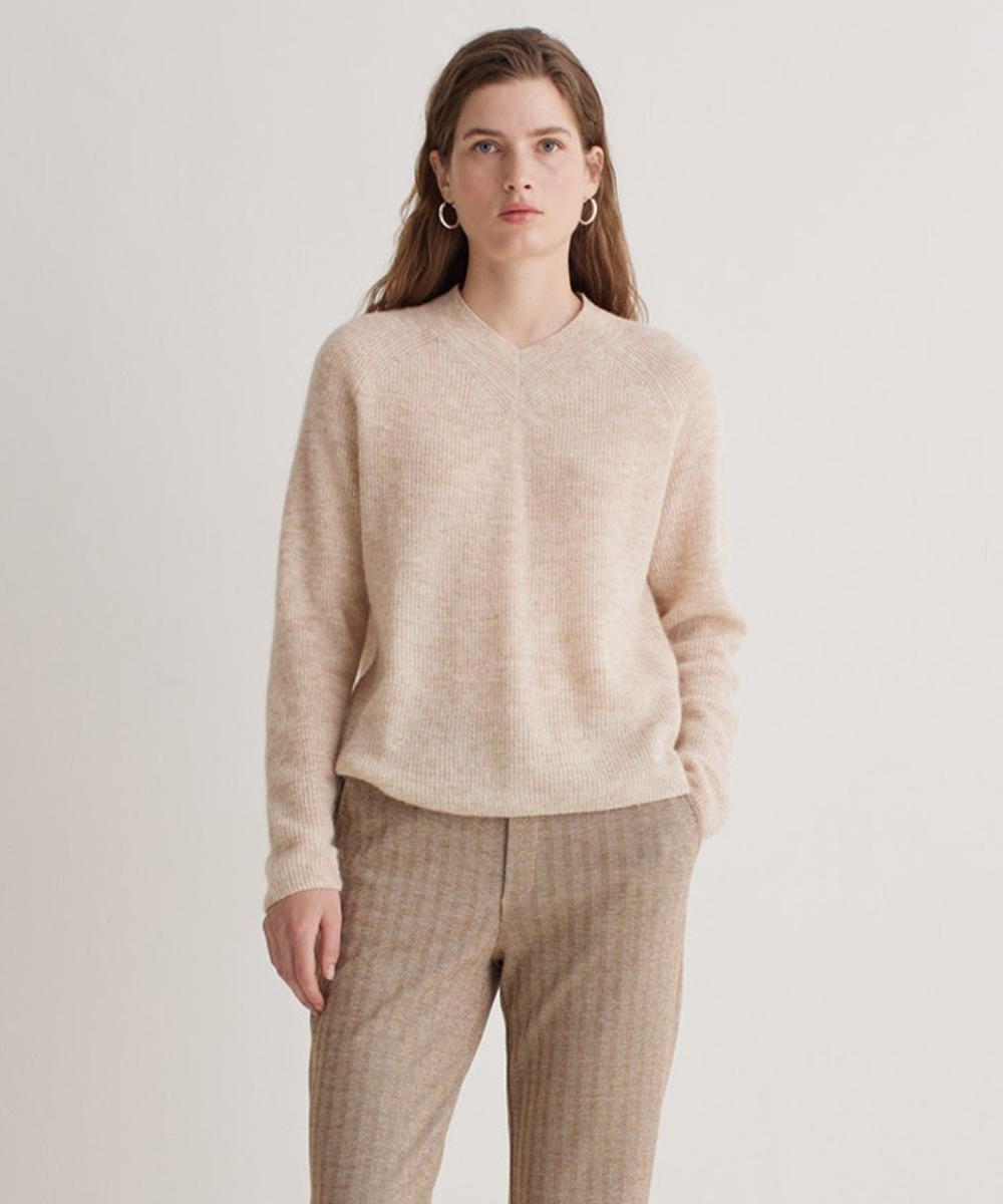 Crafted from a luxurious blend of alpaca, wool, and nylon, this fisherman's rib sweater delivers both warmth and refined elegance. The classic V-neck and raglan sleeves create a flattering silhouette that works seamlessly across seasons, while the textured knit adds visual interest and durability. The regular fit accommodates layering without excess bulk, making it an essential piece for discerning wardrobes. Soft, breathable, and built to last.